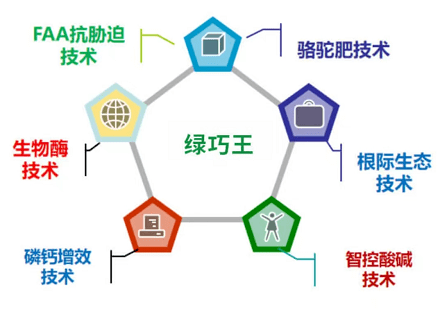绿巧王为高效性液体肥,中微营养含量高,及时纠正作物缺素症状,防治叶片黄化、裂果、落果,防治软腐、心腐、根腐等生理症状。内含鱼小肽,无需转化,可直接吸收,快速补充作物营养,同时带动难移动金属离子的吸收;内含核能酶,有效促进植物的代谢功能,促进芽、根尖等分生组织的生长发育,生根、壮棵、预防早衰,使处于逆境胁迫下的作物得到快速修复,恢复其生长,增强其抗性。